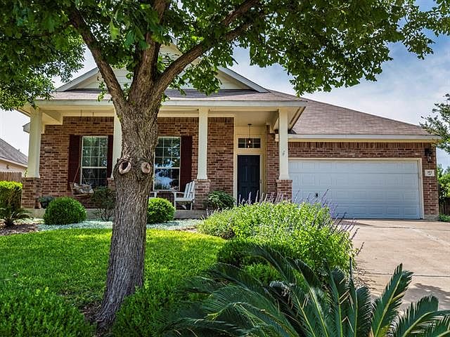 Just listed. Lush trees, landscaping, outstanding backyard are just some of the eye catching features of this lovely 4 bed, 2 bath, brick and columned traditional home in Four Seasons Farm. Numerous upgrades include custom tile, concrete stamped floors, stone counters, pendant lights, hardware, all with a designer paint scheme. Master bedroom has garden tub, separate shower, double vanity and walk-in closet. Window treatments throughout. Automatic sprinklers, fire pit, fenced, great location. Kyle.