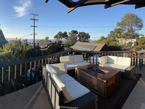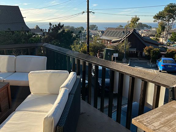 This one of a kind mid--century wood and glass beach beauty is located in the heart of the Del Mar Village. Renovated in 2016 (new bathroom and kitchen cabinets, counters, and fixtures) it continues to provide tenants with a unmatched opportunity to enjoy all Del Mar has to offer. The upstairs giant wall of glass provides ocean views from within the bedroom and throughout the living area. With new Bamboo floors, a freestanding fireplace, and wood beam ceiling and redwood walls, it's a Del Mar classic. The downstairs bedroom and bath is large, with a fenced in patio, ocean views, and it's own separate entrance. The Del Mar Plaza and Starbucks are less than a block away, and a short walk down 15th street to the park and beach awaits. With ocean views over L'auberge from the upstairs living area you feel the beach vibe that makes living here so desirable. *Rent furnished for $7,000/month OR unfurnished at $6,500/month* *Pets are negotiable upon approval.* Owner pays for trash and water. Renter responsible for Gas, Electric, and Cable/WIFI