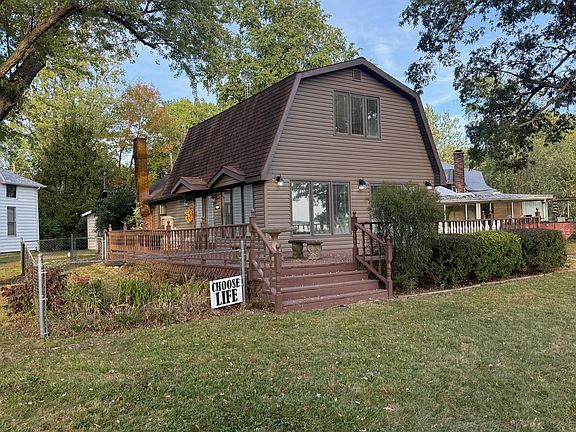 The home's lower level impresses with a beautifully designed bonus room that overlooks the lake and includes its own wet bar, ideal for entertaining guests or unwinding in a relaxed atmosphere. The living room exudes comfort with a gas-burning fireplace that serves as the centerpiece during cozy evenings. The kitchen comes complete with appliances, making it move-in ready. All items currently present can stay should you desire a fully furnished setup at closing. A first-floor bedroom and a full bathroom with washer and dryer hookups further enhance the home's practicality for families or guests. Additional features include a dock, available with voluntary HOA participation, and recent upgrades such as a new furnace and AC installed in 2021/22, with new siding, gutters, gutter guards, and exterior light fixtures added in 2024. Completing the package is a convenient one-car garage, and storage unit for lake toys or golf carts. This lakeside home is the perfect blend of functionality, and serene views.