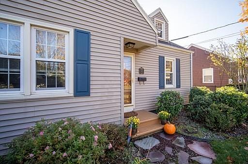Pride of ownership is evident in this charming cape. Small sun room with front and back access great place for reading. First floor offers fully appliance d eat in kitchen, Dining room,,living room and bedroom with hardwood floors. Second floor has 2 large bedrooms with built in drawers, closet and loft storage. Spacious family room in basement. Large completely fenced yard with storage shed. Solar panels are approx 4 years old with 20 year lease. Seller pays little to no electric. NEWER; roof, vinyl siding, windows, chimney, hot water tank 2018. and new stairs in hatchway.