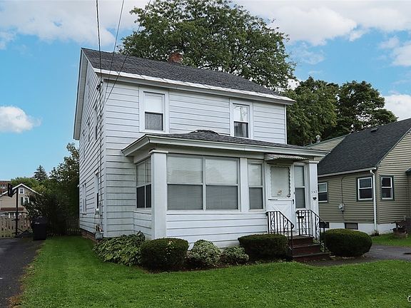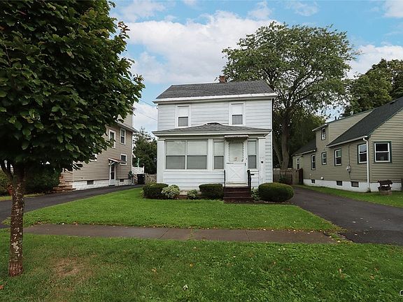 Spacious Eastwood colonial with so much to offer: from enclosed front porch, gorgeous brick fireplaced living room with built ins leading to flexible formal dining room or more family space. Newer Oak cabinet kitchen with black appliances. Spacious eating area with access to deck and rear yard. Full bath and laundry room finish the first floor. Upstairs offers 3 large bedrooms and a full bath. Full walk up attic with 2 rooms plus tons of storage or future expansion. Lots of character for you to make home with hardwood floors under carpeting in living & dining rooms, stairs and bedrooms; stain glass window in living room and lots of woodwork. Detached oversized 1 car garage great for a workshop or all of the outdoor toys. Taxes listed with no exemptions.