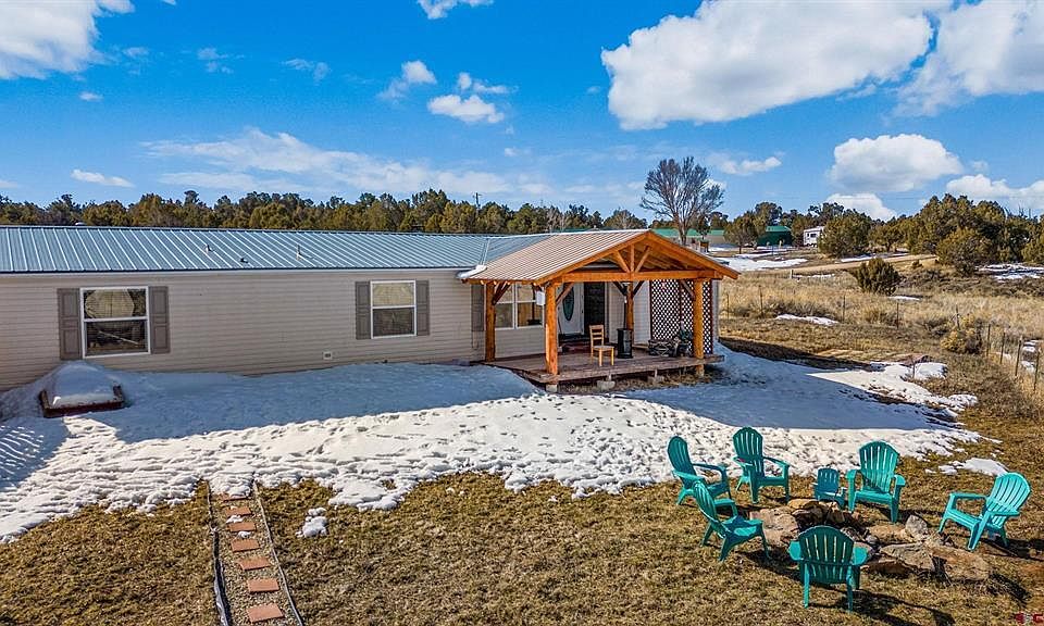 Welcome to your new haven nestled on over 3 acres of pristine landscape! Positioned conveniently between Durango and Bayfield, this residence embodies the perfect blend of rural tranquility and modern convenience. Boasting three spacious bedrooms and two full baths, including a primary suite adorned with a spacious closet and the scenic La Plata Mountains to the north, every inch of this home exudes comfort and spaciousness. The interconnected living room, kitchen, and dining area create an inviting ambiance, ideal for gatherings of all kinds. A mudroom caters to the practicalities of country living, while the outdoor spaces truly elevate this property's allure. Enjoy the expansive covered deck and soak in the awe-inspiring backdrop of the San Juan Mountains, extending out to a sprawling backyard and pasture enclosed by fencing, complete with a chicken coop and playhouse. Additional amenities include a small shop, a newer storage shed, a carport, and access to public water from the La Plata Archuleta Water District. The pastures offer ample space for horses or other livestock, making this property a true equestrian's paradise. Inside, revel in the elegance of granite countertops, new backsplash, and the charm of brand new plank flooring and fixtures, providing the perfect finishing touches to this exceptional home.