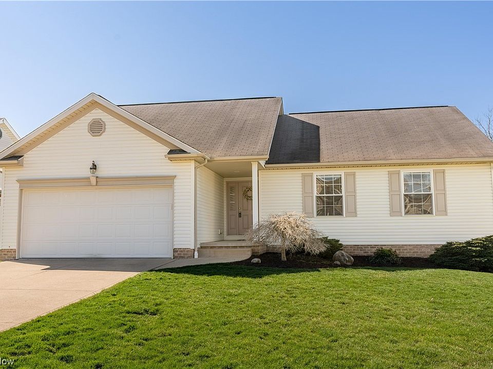 Welcome to this well-cared for and super clean one-owner home in a quiet NE Massillon cul-de-sac location! This attractive ranch-style home offers everything you need on the first floor, including three spacious bedrooms, two beautiful bathrooms and a convenient laundry area. As you step inside, you'll be greeted by an open floor plan that seamlessly connects the dinette, kitchen, and great room, creating a perfect space for entertaining guests or relaxing with your family. The gas fireplace adds warmth and charm, while the vaulted ceilings provide a sense of spaciousness and grandeur. Whether you love to cook or simply enjoy spending time in the kitchen, you'll appreciate the ample counter space with a sitting bar, pantry cupboard and all of the appliances found in the kitchen. When it's time to retire for the night, the primary bedroom suite offers a peaceful retreat with plenty of room for a king-size bed and includes a walk-in closet, and an en-suite bathroom featuring a walk-in sh