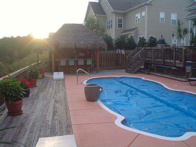 Beautiful Inground Pool, Charming Cabana, Large Deck, Remarkable Privacy. Spacious Master on Main. 5 BR/3.5 BA. Gorgeous Satin Finish Hardwood Floors throughout L/L. Living Room/Office, Formal Dining Room, Upgraded Kitchen with 42 Maple Cabinets, Granite/Tumbled Marble Backsplash. Open Family Room w/GL Fireplace and Surround Sound. Ceiling Fans, Upgraded Lighting. Tons of storage space. Must See.