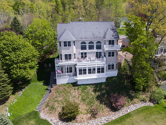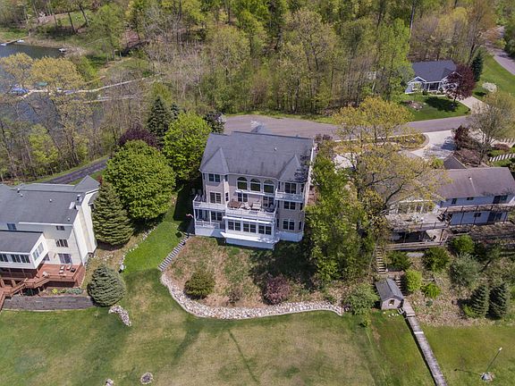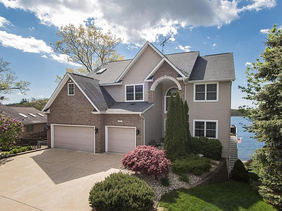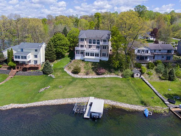 Amazing custom home on a superior lot on 130 ft frontage on private, All-Sports Lake Doster! Best of class construction, design and some of the finest finishing you'll find at any price highlight this incredible 7 BR, 4 bath home. This 2-story walk-out home includes over 4,600 fin sq ft, all of which is above grade. The home has a top-end kitchen w granite counters on the main floor, with soaring ceilings and windows that provide simply stunning views. Brazilian cherry floors on the main floor (the 2nd floor BRs all have mahogany floors!). Wonderfully open. There is a completely independent in-law suite on the walk-out level that offers another beautiful full kitchen w solid surface counters, 10' trayed ceilings, 2 large BRs, laundry, full bath and a 4 season room! Lower level also includes enormous storage, and a workshop below the 3-car garage. 2nd story offers 4 BRs, kids playroom, including a sublime master suite that's completely surrounded by water! Upstairs laundry. Incredible lot and views! Whole house generator.