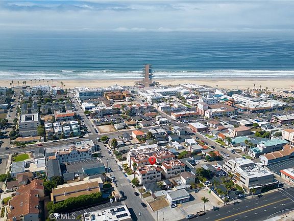 Stunning Mediterranean-style condo just two blocks from the sand, pier, and vibrant downtown dining and shopping. Offering the flexibility of full-time coastal living, a luxurious vacation retreat, or an income-producing investment, this property is currently being utilized as a licensed short term vacation rental. The 3-bedroom, 3.5-bath 1769 sq ft residence includes a private 1-bedroom, 1-bath Casita with kitchenette and separate entrance—ideal for guests or extended family stays. From the spacious 2-car garage, a private staircase leads to the main living level, while a separate staircase from the street provides additional access for convenience. Inside, wood floors flow throughout the open-concept living and dining areas, complemented by a chef’s kitchen featuring quartz counters, stainless steel appliances, and high-end finishes. A powder room completes this level. Upstairs, the luxurious primary suite offers a serene sitting area and spa-like en-suite bath with dual vanities and a large walk-in shower. A second bedroom with full bath and a conveniently located laundry room complete this floor. The ground-level Casita offers flexibility with its own access from the garage and the private staircase. Crowning the home, an expansive rooftop deck captures panoramic ocean views—perfect for entertaining or savoring spectacular sunsets. Combining elegant finishes with modern convenience, this property embodies the very best of upscale beachside living with exceptional income potential.