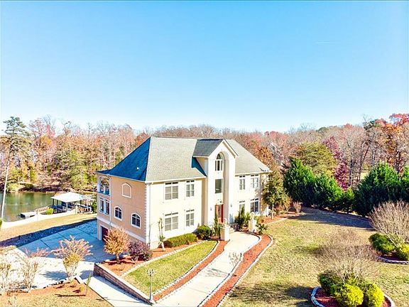 WOW! 7k square feet and 1.4 acres in this stunning waterfront home on a quiet cove on Lake Wylie! This home sits in a cul-de-sac with amazing views for you to enjoy on the huge main and upper level balconies! Complete with a boathouse, floating dock, and beautiful landscaping. Finished basement with built in bar is perfect for entertaining! HUGE Primary suite with a fireplace, walk-in closet, double vanity, and separate shower and garden tub. Enjoy cooking with your lakefront views in your huge kitchen with lots of cabinet space, double ovens, granite counters, large island, SS appliances, and a sunroom right off kitchen. Great room with gas log fireplace and french doors that open to a balcony. A total of 3 fireplaces in the home and one outside of the basement! Home is districted to the amazing Clover District schools and low SC taxes! Come see this beauty today and enjoy living life like every day is a vacation!
