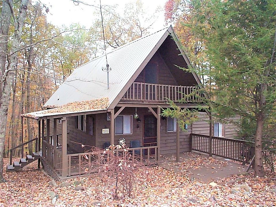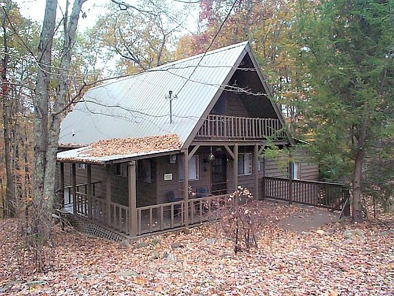 Excellent condition, freshly stained cabin on .46 acre lot with master bedroom on the first floor. Spacious floor plan sleeps 10 easily. Cabin is being sold fully furnished. Clean, move in ready, cabin has central heat on the mail floor and a window AC unit, washer dryer area downstairs and full bath. Living room area and family room area downstairs with french doors that go out to the back deck. Upstairs are two more furnished bedrooms and a half bath. Two decks off the bedrooms upstairs with screen doors to get nice evening air with the doors open. There is also a storage shed, very nice interior on this cabin.