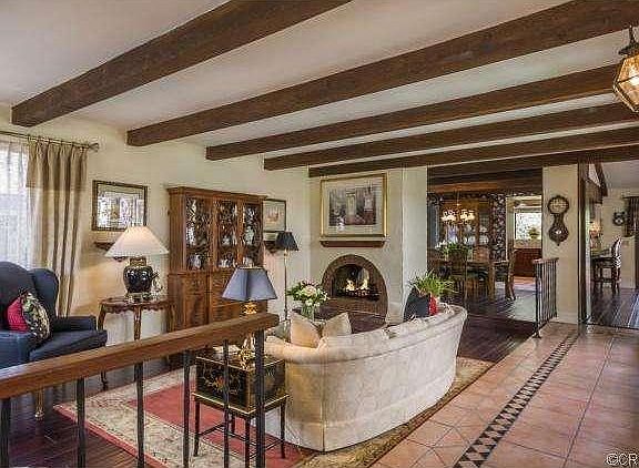 This is truly an entertainers dream home! Mediterranean style open floor plan built around a fabulous landscaped atrium allowing light to flow to all rooms. Impeccably maintained by original owner. Stunning courtyard with lush landscaping, spa with water feature. Four spacious bedrooms (one master upstairs and one downstairs)Kitchen features generous use of granite, breakfast bar, and convenient pass out window to outside patio. Family room opens to kitchen and boastswood beamed ceilings and beautiful wood floors. Living room and dining room enjoy a 2-sided fireplace. Separate laundry room and direct garage access. Unbelievable amount of storage. Close to award winning schools, parks, marine stadium and weekly farmers market.