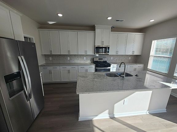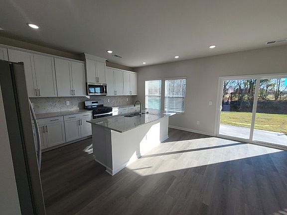 NEW Energy-efficient home available in River Glen! Washer, Dryer, Blinds and Refrigerator ALL INCLUDED! Open first floor includes flex space that can be used as office/formal dining room. Luxurious vinyl plank flooring throughout entire FirstFloor. Kitchen boasts large island, tons of cabinet space, Quartz countertops, Gas Whirlpool range, SS Side by side fridge, tile backsplash, and huge walk-in pantry. Upstairs features a spacious primary bedroom with ensuite bath including a large shower, dual vanities and huge WIC, 3 secondary bedrooms and a loft which offers flexibility as an office, media center, or playroom. Amazing Smart Features including thermostat, door lock, smart garage door, and video doorbell. Dakota plan offers open entertaining floorplan. Fully sodded front and back yard. This prime location offers quick access to downtown Angier and US-401 connects to Raleigh. 12 months plus