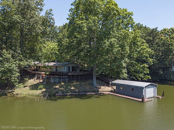 WHO WANTS THE LAKE LIFE? This is a lake lovers dream with 450 linear feet of lake frontage, one of the best docks on the lake, a boathouse and your own peninsula this lake house is a must see! The 3 bedroom 1 1/2 bath home has been seriously updated and upgraded with beautiful granite countertops, custom cabinetry, totally renovated bathrooms and showers,new lighting, fresh paint and more. This cottage style lake house comes with gorgeous views of the lake from your many enormous decks and docks not to mention beautiful freshly installed landscaping. The property actually consist of two lots at the end of a cove and on the property are two separate workshop/sheds (both with electricity). Every single area I have mentioned is also handicap accessible! Call today for your private showing!