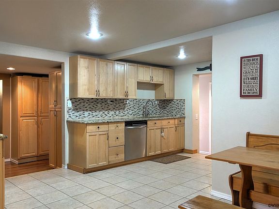 Updated home on over ½ acre with Shop! Easy access to I-5. Spacious home with nearly 1900 s.f. not including the attached oversized 2 car garage with raised ceilings for extra storage. Newer hard surface laminate flooring thru living room, hall, front bdrm and family rm. Real hardwood floors in back hall and other two bedrooms. Updated kitchen/dining w/ cabinets, tile floor, backsplash, and above range microwave. Tons of pantry space! Also recently updated to a "smart home" set up. Large sunken family room w/ gas fireplace. Step down to 3rd bdrm and Master suite both with heated floors and walk in closets. Master has full bathroom/shower. Large indoor laundry area. Gas Forced air heat with new furnace installed February 2021. Central air conditioning added in 2018. Exterior features include gated yard to large patio, shop with 2 garage doors, room and power and water connections for RV/Boat, green house, enclosed garden area, mature plum tree and other beautiful shade trees. Also includes a sump pump and an upgraded well pump in 2018. Swingset, zipline, trampoline, and archery area make this a personal paradise for kids!