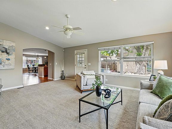 Beautifully Maintained Ranch in Cherry Knolls! Spacious 2,873 square-foot ranch in the highly desirable Cherry Knolls neighborhood. This meticulously cared-for home features new carpet, fresh interior paint, and thoughtful upgrades throughout. Professionally landscaped yard with Smart Turf, garden beds, fruit trees, and a covered patio—perfect for outdoor entertaining. The oversized two-car garage includes a three-car driveway and a side pull-through for extra parking or toys. Bonus: large, electrically-wired shed ideal for a fitness space, office, hobbies, or workshop. The expansive primary suite offers a huge walk-in closet, private en-suite bath, and direct access to the covered patio wired for sound. Main-floor laundry is a rare and convenient feature. Two additional bedrooms on the main level, plus a partially finished basement with rec room, non-conforming bedroom, and bath. Tons of storage and key systems in place: large water heater, water softener, humidifier, and reverse osmosis filtration. Cherry Knolls is known for its close-knit community, pool, parks, year-round neighborhood events, and access to the South Suburban Trail and High Line Canal. Located near award-winning Littleton public schools. Close to Southglenn shopping district, where you will find restaurants, a movie theatre, and shopping. Don’t miss this rare find!