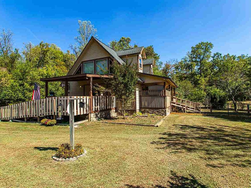 FIRST TIME ON MARKET! Have the option of seeing amazing East Tennessee scenery on your drive in and out everyday! With the option of having this home as your permanent residence or an optional investment overnight rental with several operating in the immediate vicinity. This property features an open concept floor plan with a spacious living room area open to beautiful high natural wood cathedral ceilings along with a stone gas fireplace that flows to a nice open kitchen and breakfast area. Featuring 2 bedrooms and 2 bathrooms with hardwood & tile flooring throughout the main floor. Large loft area that has a multi purpose use for an additional room, bonus room or game room. Large porches, fenced in areas, detached garage and carport for plenty of storage and parking! View while you can!