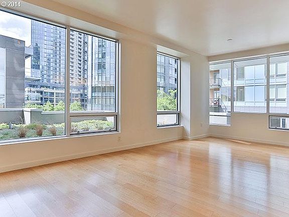Spacious one bedroom in the Meriwether with bonus space for office or dining room. Open balcony off the master bedroom with all new carpet. Hardwoods, light and bright living room and gourmet kitchen with island. All appliances stay. Parking space included. South Waterfront: steps from restaurants, shops, the streetcar, OHSU and walking paths. Full-time concierge.