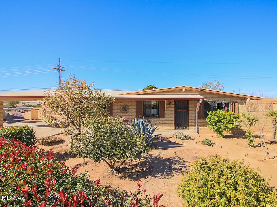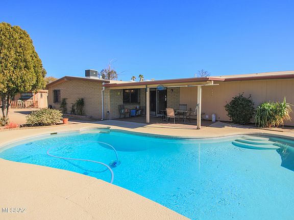 Come take a look at this beautiful slump block, ranch style home on Tucson's East side. This awesome home has lots of upgrades including the kitchen w/ beautiful cabinetry, Corian counter tops, stainless steel appliances and more. Other interior features include remodeled bathrooms w/ Moen fixtures and Toto toilets, engineered wood flooring, paint and more. Cieling fans, large laundry room/pantry and so much more. Great curb appeal from this cul de sac lot w/ mature front landscaping. The back yard is awesome. Deep sparkling pool, LOTS of mature producing fruit trees, detached cooled workshop/man cave/storage shed and paved walkways. Great mountain, sunrise & sunset views from this beautiful home. Come see it and call it yours.