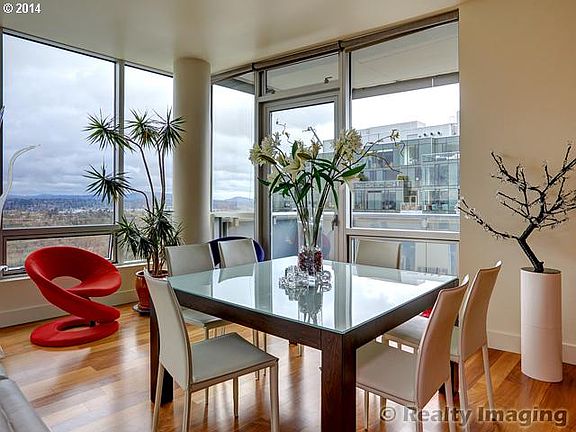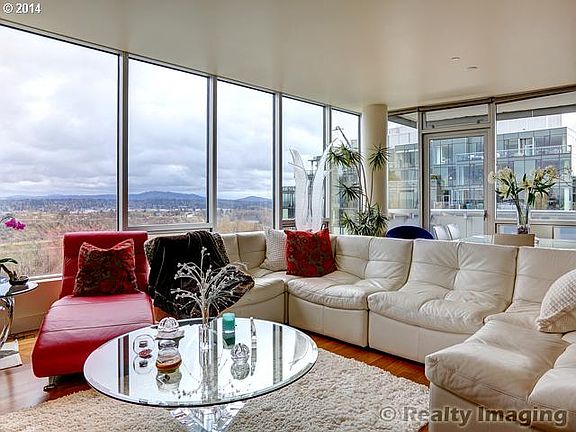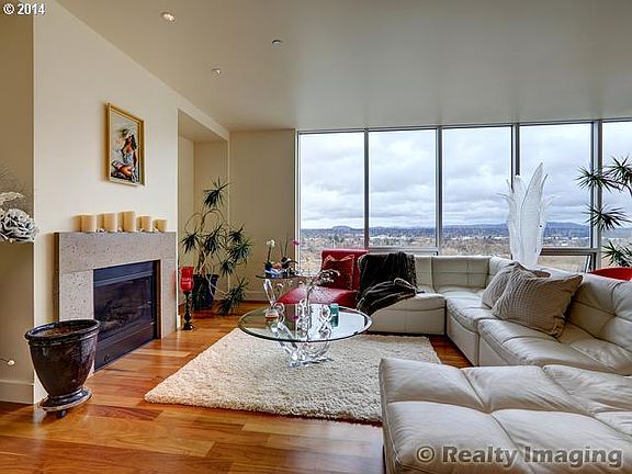 Light-filled rooms with expansive views east to Mt. Hood and south down the Willamette River from 2 balconies. Penthouse finishes include 10 ft. ceilings, gas and electric on balcony, upgraded Viking SS appliances, marble in bath and wool carpet. Live in the chic South Waterfront, steps from restaurants, shops, the streetcar, OHSU and walking paths. Full-time concierge building. Home includes 2 single parking spaces and a storage space.