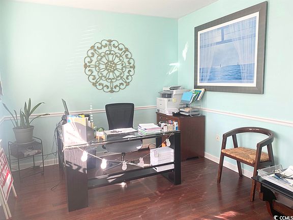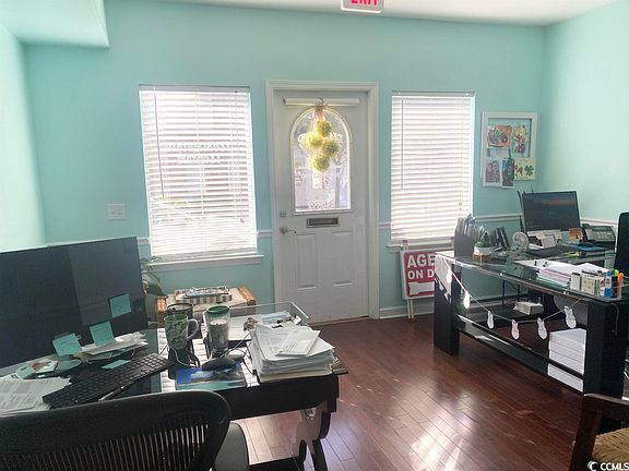 This St James Square live/work townhome is coveniently located at 38th Avenue North and Robert Grissom Parkway and is less than a mile to the beach! This location is convenient to shopping, restaurants, entertainment, grocery and hospitals. This unit has a nice two bedroom, two and a half bath condo on the top and a large work area on the bottom offering two separate office spaces, a bathroom, and two large storage closets The first-floor retail space currently houses a real estate office. The condo upstairs has its own entry/foyer in the back with two parking spaces. The condo offers an open floor plan with beautiful wood flooring on the first level, stainless steel appliances, granite countertops, a pantry, a large laundry closet, attic storage, a patio with fenced yard, and two parking spaces. You can live here, work here or both or you can just enjoy the rental income from both units!