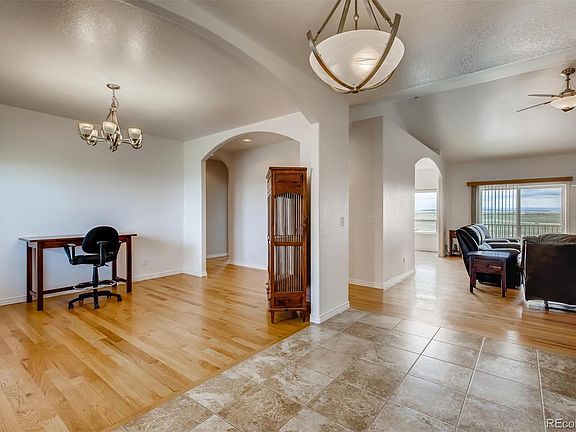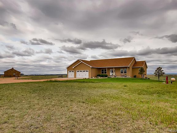 AMAZING FULL FRONT RANGE VIEWS. You can grill out on your deck while watching the sun set over the mountains. This newer home sits on 10.23 fully fenced acres! Plenty of open space with great landscaping, peace and quiet, yet your neighbors aren't too far. Kitchen counter tops are granite, kitchen cabinets are "Knotty Alder wood" tongue and groove by "Medallion". This well maintained home has an open floor plan with vaulted ceilings, real hardwood floors, well maintained tile entry and stainless appliance package. The basement is a walkout with 9' ceilings and 220 electrical with fantastic views of the mountains, that could be converted into a game room, bedroom, theater room..... the possibilities are endless!!! The extra deep and tall 3 car garage is large enough to house any truck or SUV. The newer 2 stall outbuilding is complete with water, 220 electricity and newer beautiful wood flooring. This home is equipped with a "SMART AUTOMATIC WHOLE HOUSE GENERATOR", so no need for a flashlight if you lose power! This truly is a turn key home that won't last.