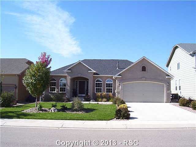 LIKE A NEW HOME! Gorgeous stucco home with mountain views. Open concept with large living room with gas log fireplace, lovely formal dining room. Gourmet kitchen with dining nook, wood floors, upgraded cabinets, granite counters, stainless steel appliances and walk out to Trex deck. Large master bedroom with 5 piece master bath, and walk-in closet. Huge family room with garden level windows. Professionally landscaped yard. Many special features including reverse osmosis water filter, whole home humidifier, custom blinds. Soft water system, whole-home surge protector, radon exhaust system, blackout blinds in all bedrooms, tinted windows on main floor to improve security/privacy, direct plumbing for hot water, upgraded carpets, extra tall cabinets in large master bath, additional counter top in kitchen and large pantry, security system, coax and Rj 45 connections, insulated MB tub, bump out in kitchen eating area. Wonderful home !! Close to shopping and Fort Carson.