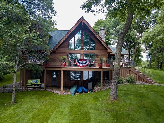 Retreat to the seclusion of this 5 bedroom 5 bath log sided home situated on 530 ft of sand frontage on Clamshell Lake and a 1.83 acre wooded point lot that boasts a southern exposure, fabulous lake views, and a sand beach. Newly remodeled home has an Up North feel, a Knotty Pine interior, log accents, split rock fireplace, reclaimed floors, updated kitchen appliances, main floor master bedroom suite, large lakeside family room, updated bathrooms, a loft area, and a bonus room above the garage. Sit back and relax on any of the lakeside decks and take in the stunning lake views. Attached 2 stall garage is extra deep and offers plenty of storage. Enjoy boating, fishing, swimming an all that the notable Whitefish Chain has to offer. Property is minutes from the Crosslake and Pequot Lakes amenities which include great restaurants, fantastic golf courses and various shops. For added privacy you can also purchase the adjacent lot 9 with 330 ft of frontage. Lake living at its finest.