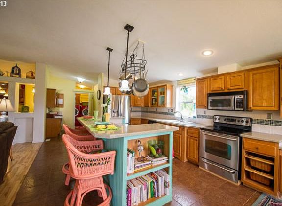 If you are looking for a country retreat, close to town, here it is. Relax to the sounds of the waterfall & the birds singing as you feed the koi in the 10' x 20' pond. Master suite hosts a sitting room/den, walk in shower, garden tub & access to the covered back deck w/views of Saddle Mountain & Youngs River. Property includes a 10'x20' studio & 8'x16' storage shed.