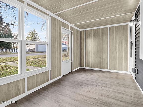 Point Place turn-key home ready for you, adjacent to Lake Erie and public access across the street. Quiet location on corner lot. Home was totally rehabbed, NEW kitchen, bathroom, paint, plank flooring throughout the home, light fixtures. Total knock down and NEW enclosed porch additional living area, included in SF of the home. Vaulted/slanted ceilings with ceiling fan light fixtures adds space and light. Bedrooms with ceiling fan light fixtures, wardrobe closets and loft storage space. Set up for stackable washer/dryer convenient to bedrooms. Eat-in Kitchen w/new appliances, cabinets w/granite countertop and goose neck faucet. Whirlpool 5 burner Gas range, microwave and Whirlpool refrigerator. Bathroom with shower stall bathtub, new commode and vanity & mirror. New insulated entry and storm doors. Side load driveway convenient to back door with space for patio. Shed for storage. New plumbing and electrical