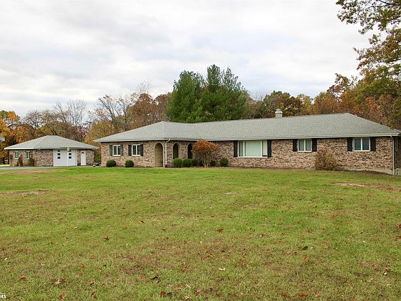 Spacious home in DESIRABLE LOCATION on 2+ acres!! Beautiful, ranch-style brick home on hard road and paved driveway. All amenities on the main level. Oversized attached 2 car garage and separate detached 2 car garage. Just shy of 4500 livable square feet with 4 bed upstairs, 2 non-conforming bed downstairs, and 3.25 bath throughout. Large maintenance-free raised concrete patio. Contact your favorite Realtor to schedule a viewing!