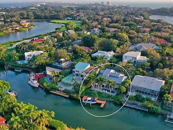 A waterfront oasis fulfilling the island resort lifestyle you deserve, this custom and completely renovated home bestows lavish comforts enhanced by tropical views complemented by a coastal vibe. Better than new, the mesmerizing finishes and features of the renovated property harmonizes with a breezy floorplan that provides an indoor-outdoor fusion throughout the home constantly reminding you of paradise. Thoughtfully chosen design elements and finishes grace every level, from the wood-look porcelain flooring to the hardware, and out to the renewed boat dock. A bright and open living area accentuated by vaulted ceilings brings you inside where you immediately see views of the protected deep water wide canal looking out to Buttonwood Cove through several sets of French doors. Open the doors and let the breeze fill the home while guests relax on the deck as you prepare meals in the gorgeous kitchen, equipped by a sprawling breakfast bar, lots of cabinetry and counter space, tile backsplash and stainless appliances including a natural gas range and wine fridge. There is even a custom dog feeding station for the pups - meaning no member of the family has been left out of the redesign process. On the main floor, there is a second gathering area with access to the heated pool with spa that can easily be a bonus room for games, exercise or whatever you need. The romantic and accommodating master retreat boasts a sitting area with office space, French doors the deck and pool, and spa-worthy en-suite bath. On the second level, everyone has a personal domain with an open loft area for lounging and a third and fourth bedroom - each offering private balconies with exceptional views. The fenced yard affords safe play for the pets and kids as well as privacy to the upgraded dock with new 20,000-lb lift and kayak launch. The Intercoastal Sarasota Bay is just minutes away by boat! Included with the renovation are newer ACs, new interior doors, tankless water heater, Halo water filtration system, and commercial ice maker. Located in outstanding Bay Isles, appreciate the 24/7 guard gated community with access to the Beach Club and shared amenities with the Resort at Longboat Key. Memberships are available to the Resort at Longboat Key, giving members access to all amenities of the Resort including golf, tennis, beach, and 5 restaurants. You are close to shopping, dining, local necessities and amenities, beaches and more. This is what paradise living is meant to be.