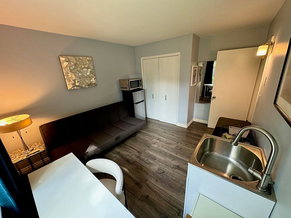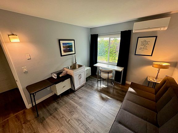 Newly remodeled FURNISHED two rooms, one bath at rear of single-family home. One room features a queen bed, TV and storage space. Second living space features a couch, expandable dining table and chair, refrigerator, microwave and sink. There is NO OVEN, STOVE or LAUNDRY. This is NOT the place for someone who loves to cook. This rental features its own entrance at the rear of the property, a small patio and a yard. Utilities and internet are included, no cable. SIX MONTH LEASE REQUIRED Absolutely no pets, no exceptions! We love animals but our nasty cat does not. ABSOLUTELY NO SMOKING First, last and security deposit required. $2700 required to move in. Absolutely NO SMOKING, NO PETS