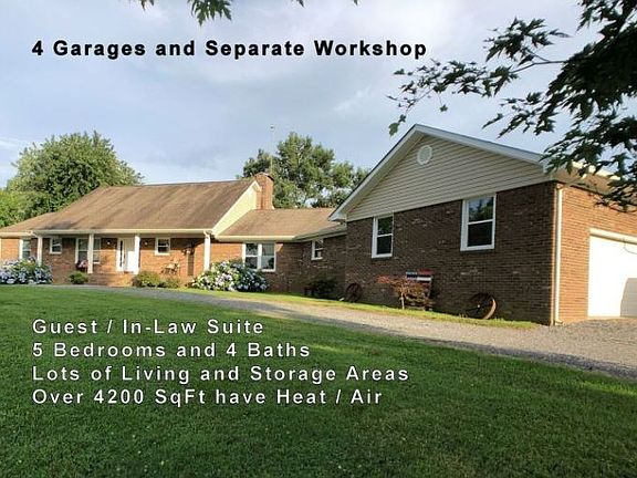 ALL THINGS BRIGHT AND BEAUTIFUL (AND PRACTICALLY NEW) This 1 1/2 Story Brick & Vinyl Siding Home has 2 Living Quarters and features 5 Bedrooms (2 Masters), 2 fully furnished Gourmet Kitchens w/ New Granite Counter Tops & ALL Appliances, 4 Bathrooms w/ New Granite Counters and New Flooring, Large Family Room w/ Gas Logs in a Wood Burning Fireplace, Formal Dining Room, Beautiful Hardwood Flooring, 2nd Living Area could be In-Law Suite, Teen Suite, Business Offices--great potential. Large Covered Back Porch, Patio, 4 Garages, Workshop. New Windows are Low E Glass and High Efficiency. 1.83 Acres allows a horse or cattle. Home Warranty for Buyer. In short, this home has all of the amenities most highly desired in today's market. Come see it soon!