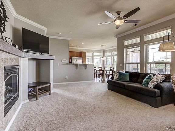 Beautiful and Rare 3 bedroom Village at The Broadlands condo! Top floor unit with stunning MOUNTAIN VIEWS from the covered patio and inside the home! New carpet, window treatments and interior paint in the last 2 years make it feel new and inviting. With 3 bedrooms, in-unit laundry, and a fireplace this can be perfect for a family or an individual looking for room to share with guests. It also features a detached, courtyard accessible 1 car garage with room for additional storage. There is full access to The Broadlands pool, clubhouse and associated amenities plus you are an easy walk to groceries, restaurants, shops, and so much more. Downtown Denver, Boulder, DIA and the whole North Metro area are within easy distance. Don't miss this rare and wonderfully cared for beauty!