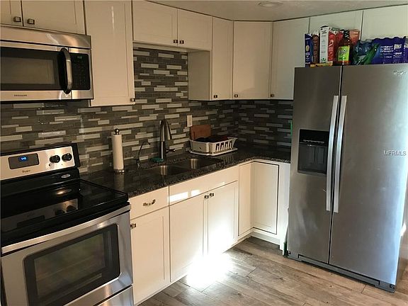 If you are looking for a beautiful updated home you need not look any further. This 3 bedroom 1 bath home has a new kitchen with appliances, granite countertops and a tile backsplash. The split bedroom plan is great for a mother-in-law suite or for guests. There is a beautiful grey wood plank ceramic tile throughout the home. The bathroom is also updated and it has handicap accessories for ease of use. The home sits on a large corner lot. A pool can be added, as there is a large backyard. The new roof has a double laminated Presidential Shake asphalt shingle with a limited 50 year warranty. Newer air conditioner and water system. The driveway has brick pavers and is large enough to accommodate many cars. Come by take a look and make this your new home.