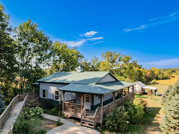 Welcome to your ideal homestead! This stunning, Morton-built Barndominium-style home sits on 19.48 acres, offering a full finished basement, wrap-around deck, and covered porch, all designed for comfort and relaxation in a secluded setting.