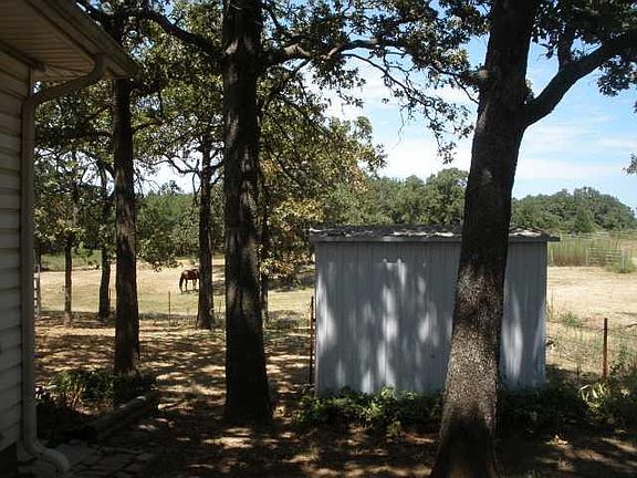 Cute 2 bed, 1 bath home, 4.89 acres, fenced, storage shed, small barn with stalls, feed room, storm shelter. (Portable roping pen, gate on barn, panels, & furniture belong to previous tenant)