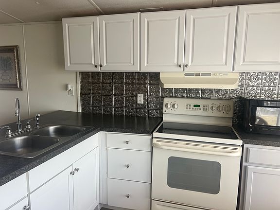 This home sits on a large lot and has so much potential. The main roof has been resealed in 2024 and the 24' x 12' enclosed lanai had a new roof installed in 2024. The lanai adds additional living space and leads to the entrance of this home. The kitchen cabinets are newer from 2020 and the updated kitchen is perfect for entertaining. The bay window adds so much natural light making it a pleasant room to dine in. The living room overlooks the kitchen and is a great place to relax and unwind. The guest bedroom is down the hall from the living room and the closet has ample storage. The bathroom has been updated to include walk-in shower ad newer vanity. The hallway has a linen closet for storage and a back door leading the shed, which houses the washer and dryer and provides extra storage. The Primary bedroom is spacious and has a larger closet. This home is priced to sell ! Call for you showing today.