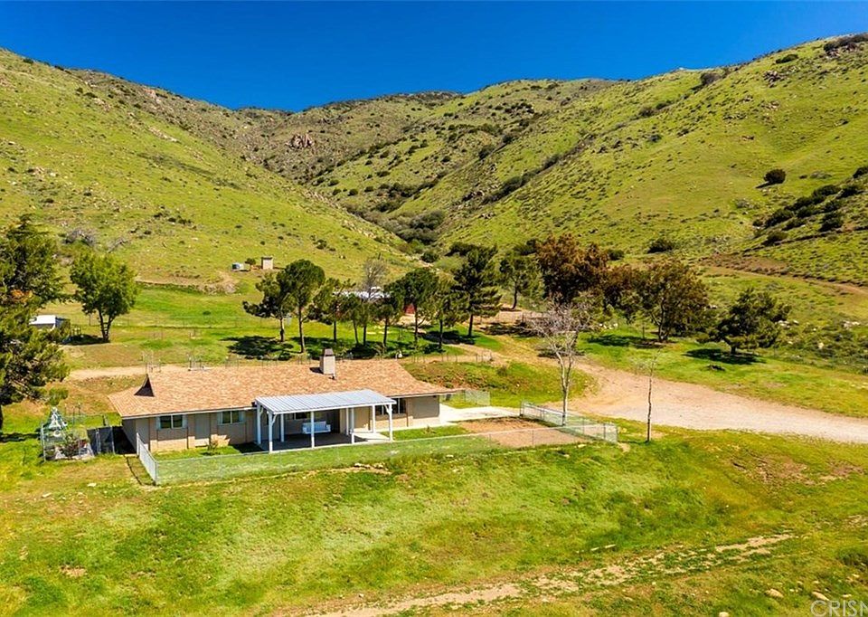 LEAVE THE CITY BEHIND! This spectacular five-acre ranch features a chic and cozy main house with a designer's flair. Survey your panoramic view from the front porch then enter the bright living room with its wood-burning fireplace. Out of a magazine, the newly remodeled kitchen features custom cabinets with open shelving, marble hexagon tile backsplash, and quartz countertops The open dining room flows into the family room which has built-in shelving straight out of Pinterest. There is tasteful and durable tile flooring throughout and fresh neutral paint. The master is serene and has a remodeled bathroom and a dream closet. The secondary bedrooms are nicely sized and the second bath has wainscotting and an upgraded vanity and starburst mirror. The ranch includes a picturesque meadow, pond, corral, seeded garden plot and of course, your very own RED BARN! Finding a horse property of this caliber at this price so close to Santa Clarita, the San Fernando and San Gabriel Valley is virtually impossible. Don't miss this opportunity to "Live Country."