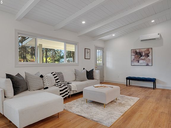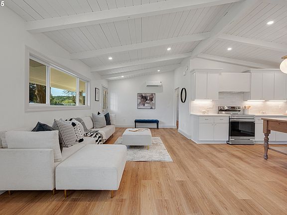 Welcome to this beautifully reimagined home in scenic St. Helens, offering the perfect blend of timeless design and modern upgrades on a peaceful 1.03-acre lot. This stunning property has undergone a complete studs-out remodel, including all-new electrical, plumbing, HardiePlank siding, energy-efficient mini splits for heating and cooling, and a brand-new roof with gutters. Step inside and be greeted by soaring vaulted wood ceilings and an expansive open-concept great room filled with natural light—ideal for entertaining or relaxing in style. The gourmet kitchen is a chef’s dream, featuring quartz countertops, custom tilework, a large island, and premium finishes throughout. The spacious primary suite offers a serene retreat with a beautifully tiled walk-in shower, dual sinks, and ample storage. The guest bathroom includes a soaking tub and designer touches for added comfort. Outside, you’ll find mature plum and pear trees, a sweeping territorial view, and a charming meadow below the home that adds to the property’s unique charm. A massive workshop/garage offers endless possibilities for hobbies, storage, or a home-based business. There's also plenty of space for RV parking, boat storage, or future outbuildings. This home offers the rare opportunity to enjoy the feel of country living with modern amenities—all just minutes from the heart of St. Helens but on a dead end road with ultimate privacy. Don’t miss your chance to own this one-of-a-kind property!