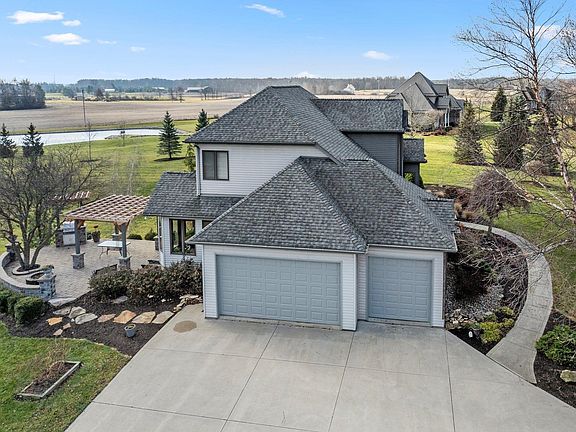 This stunning property sits on 4.75 acres and boasts 3,659 sq. ft. of living space with 4 bedrooms and 3.5 bathrooms. The home features a 4-season room, pergola, and a beautiful paver patio with a built-in gas grill—perfect for outdoor entertaining. A 3-car garage and a spacious 28x32 heated building provide ample storage and workspace. Recent updates include a 1-year-old roof, new paint, and newer LVP flooring. The kitchen comes equipped with custom cabinets, Corian countertops. All appliances stay including the washer and dryer. The luxurious master suite offers a tile shower, heated floors, a vanity with a sitting area, and a soaking tub with air jets. Upstairs, you will find two bedrooms with a Jack-and-Jill bath and a loft overlooking the great room. The finished walk-out basement features a 4th bedroom, full bath, family room, as well as a large stamped concrete patio to enjoy those relaxing evenings. Entertain your guests using the bar and pool table that stay with the home. Additional highlights include a septic system installed in 2010. This home combines modern amenities, spacious living, and serene outdoor spaces—ready to be yours!