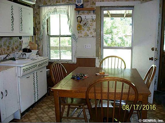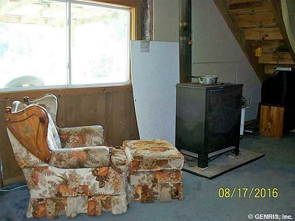 This property has been used as a camp by the sellers for the past 30 years. It has plenty of room for hungry hunters with an eat in kitchen, living room with wood stove for heat, full bath and 3 bedrooms upstairs. It has an enclosed storage room for supplies and another for wood and comes fully furnished. Newer metal roof over back porch. Property has electric, a well and a septic and sits on a little over an acre of land. You will also find good fishing in the Canisteo River just behind the house!