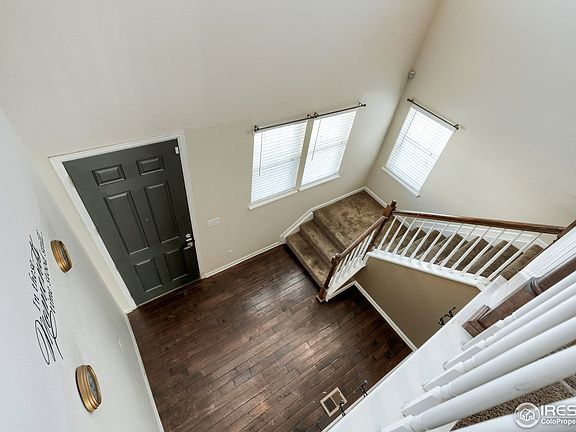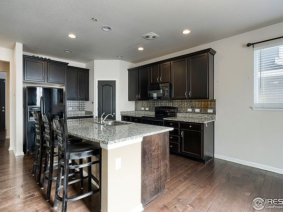 Views of front range from the covered front porch! Vaulted ceilings & new hardwood floors. Huge kitchen island, breakfast bar, granite countertops & pantry! Main floor powder room. 4 beds & 2 baths upstairs, incl master suite w/ 2 closets & master bath w/ 2 vanities! Convenient 2nd floor laundry room. Finished basement w/ additional bed, bath, and a large rec room! Tons of storage in bsmt & garage loft. Deck, pergola & patio in backyard! Walk to 2 great parks! HOA incl lawn care & snow removal!
