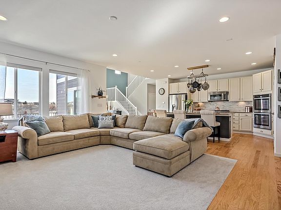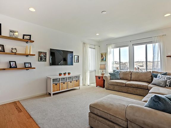 Welcome home! This home showcases beautifully with tons of natural light, a large open floor plan, gourmet kitchen, spacious master suite and tons of windows that showcase the open space situated behind the house. Enjoy cooking and hanging out in the large great room, featuring a gourmet kitchen with stainless steel appliances, double oven, granite counter tops, farmhouse sink and large center island that looks over the living space. The upstairs boasts four bedrooms; a beautiful master suite, two bedrooms with a jack and jill bathroom and the fourth bedroom with an en suite bathroom. The walk-out basement is fully finished with a spacious family room, play area, bedroom and stunning bathroom. This stunning home comes complete with a second story laundry room, main floor office/den and it backs to highly sought after open space and trails. Terrain won community of the year in 2013 for it's pools, parks, trails and open spaces.