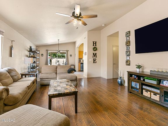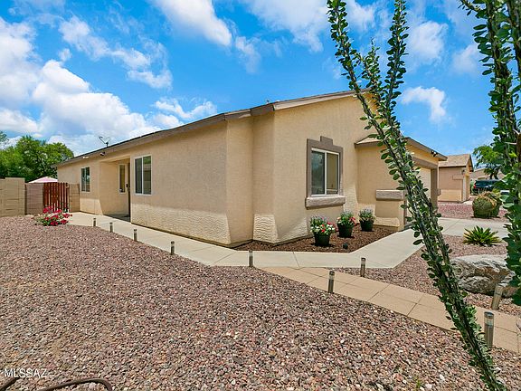 This is beautiful 4 bedroom, 2 full bathroom, split bedroom floorplan, single story is spacious and move in ready. Open concept living room with wooden floor. Upgraded kitchen and beautiful back splash, large pantry for extra storage. The roomy master bath with separate garden tub and walk-in shower includes upgraded lighting. BUT WAIT... the masterpiece of this home is the resort style backyard. Backing up to the natural desert, no neighbors behind, built-in spa, gorgeous pool, gas fire-pit, also includes an outdoor kitchen. Home is located in the quiet Neighborhood in Harrison Shadows.LOW UTILITY BILLS WITH SOLAR! Ask agent for details.