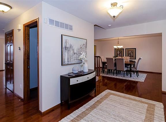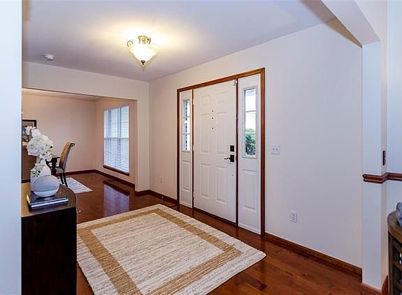 You will be awed by this gorgeous home with open floor plan and tons of updates. Generous foyer with T staircase opens to living room and large formal dining room and continues into spacious family with 5 bay window and fireplace. Entire first floor has gorgeous wood floors and home has been freshly painted. Kitchen has center island, desk, granite counters, stainless appliances, updated lighting and beautiful gray cabinets. Breakfast room walks out to unbelievably large maintenance-free deck overlooking flat yard with new cedar fence. Upstairs is an impressive master suite with attached room complete with French doors. This is perfect for a sitting room, office or nursery. Master bath has jet tub, dual sinks, separate shower and water closet. There are 3 more large bedrooms. New carpet adds to the fresh new look. Home has large laundry/mudroom with double closet and washer/dryer. Garage has extra storage space in the rear. Driveway has extra wide pad. Located on quiet cul-de-sac.