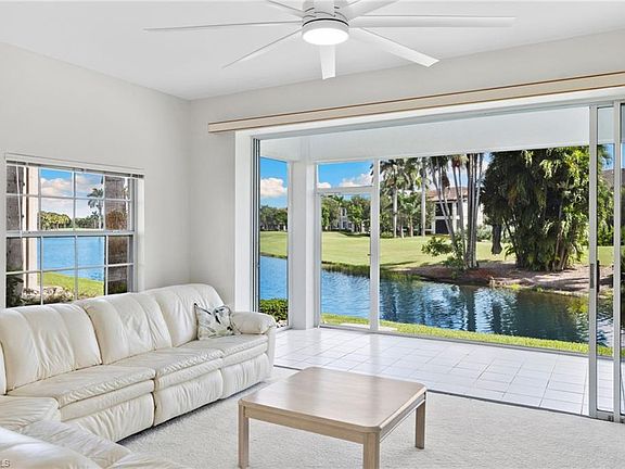 Spacious first-floor coach home in Spinnaker Pointe at Windstar on Naples Bay, offering lake and golf course views. The residence provides over 2,200 sq. ft. of total area, including an attached garage and a large screened lanai—recently upgraded with picture-frame screening for cleaner, more open sightlines. Inside, bright living areas flow naturally to the lanai for easy everyday living and casual entertaining. The kitchen is updated with stainless appliances, white shaker-style cabinetry, and hard-surface counters, while the dining space connects seamlessly to the living room. A thoughtful split-bedroom layout provides comfortable privacy for owners and guests alike. Spinnaker Pointe offers great curb appeal, community tennis courts, community pool/spa, private clubhouse, tropical landscaping and much more. Windstar offers incredible amenities including: Tom Fazio designed golf course, newly redesigned clubhouse with spectacular views of Naples Bay, 72 slip deep-water marina with direct Gulf access in less than ten minutes, clay tennis courts, bocce ball, fitness, Keewaydin Island Beach Club with boat shuttle and private membership.