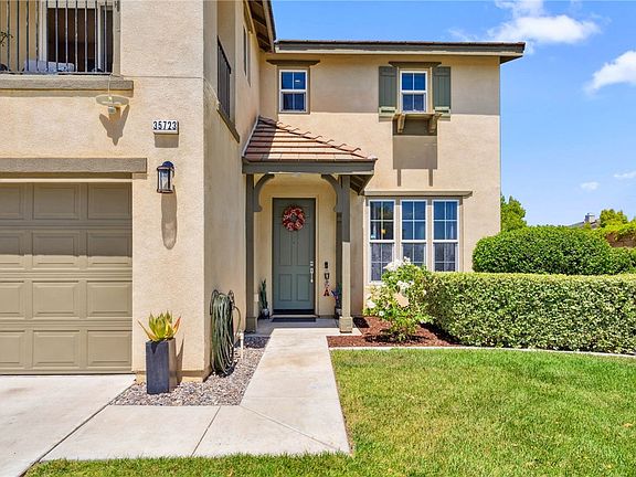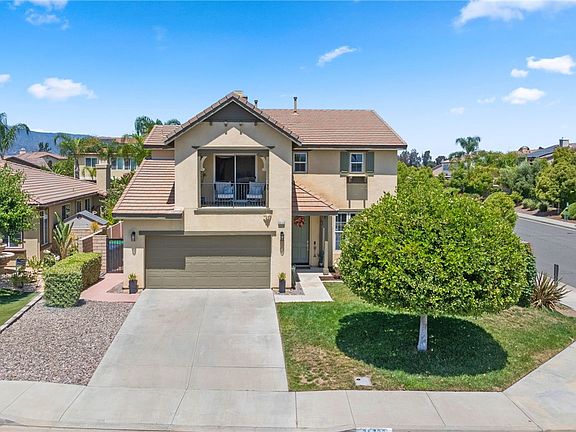 Welcome to an entertainer's dream!!! LOCATED in the vibrant community of Hartford Park, Wildomar California! This stunning home boasts an abundance of natural light, creating a warm inviting ambience throughout its spacious layout! The turnkey, corner lot cul de sac home is nestled in the sought after Hartford Park community. The property features a large backyard with alumawood patio cover, vinyl fencing, and shed for storage. This yard is perfect for entertaining or relaxing. There is a Cedar gazebo with solar lights, walkway made of pavers with beautiful trees, and flowers for privacy! This creates the perfect outdoor space for sunset dinners or brunch with family and friends!! All the doors have been replaced in this home including hardware!! The kitchen has a large island that opens up to the family room creating an an open concept/Great room feel. Kitchen is upgraded with granite counters, newer cabinets with classy hardware touches, and canned lighting! The family room has a gas fireplace, with a spacious layout! There is a formal dining room, formal living room, large laundry room, and a 3 car tandem garage!! In addition we have an entertainers MUST, a full bathroom downstairs, that is completely upgraded, and a downstairs bedroom for your guests!!. Upstairs we have bamboo flooring, new baseboards, crown molding, hallway dimmers with a huge loft that has been transformed into a theatre, lights and all! In addition, we have 2 bedrooms, one with its own private balcony !! Jack and Jill bathroom, and the nook at the top of the stairs has been turned into a custom piece of art, adding more ambience to the home! The large Primary bedroom has a custom wall feature, a HUGE walk in closet with custom organizer, and cedar walls! Bamboo flooring throughout, crown molding, upgraded baseboards, and a large primary bathroom equipped with a tub and shower! This home has it all!!! Did I mention a low HOA, $122 per month.