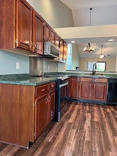 Fireplace with gas logsAppliances including microwaveVaulted ceilingDeck with privacy wallsFirst floor primary suiteLuxury vinyl plank flooring