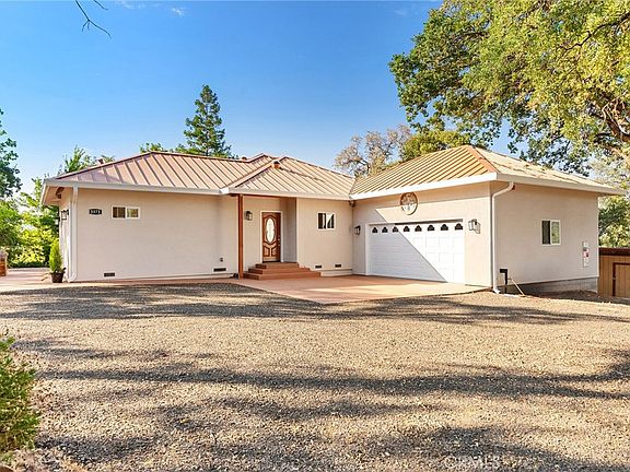NEW home nestled on nearly 4 and a half, partially fenced acres featuring OWNED SOLAR, a large SHOP, outdoor kitchen, on demand GENERATOR, metal roof, 2 wells and all the comforts you have been searching for including a neighboring creek! This NEW, never lived in custom home offers beautiful views of mature oaks and morning sunrise. You will love preparing your meals in the spacious kitchen featuring upgraded stainless appliances including an induction range, pantry, quartz counters and a farm style sink with a window perfectly placed to take in the sunrise! The open floor plan living room provides plenty of natural lighting including French doors that lead you to the large, covered patio and outdoor kitchen, perfect for entertaining! The upgrades continue through all bedrooms and baths with luxury vinyl plank flooring throughout and custom tiled baths. Step outdoors to take in the natural beauty and serenity that surrounds including multiple areas to sit relax as you take it all in. Property is adorned with multiple fruit trees (lemon, mandarin, fig, persimmon, almond, 3 apple, apricot, pear, and nectarine) all on auto drip to keep your production plentiful and worry free. Dreaming of livestock, perfect as there is a large portion of nearly flat and open acreage ideal for horses or other livestock. In addition to the attached oversized two car garage with EV hook-up there is a 20X36 shop, 30x10x10 RV carport, an adorable "she" garden shed (with water), tool shed, and a lumber shed for all your storage and hobby needs. This home is nestled on a knoll amongst mature trees providing shade and privacy yet located just minutes from all conveniences (2 miles to post office, 2 miles to grocery/hardware, 6 miles to elementary school, 9 miles to Butte Community College, 7 miles to Lake Oroville Lime saddle marina, 11 Miles to HWY 99 entrance and approx. 15 miles to the heart of Oroville). Utilities are a breeze including solid internet service, perfect for the remote worker! Call your favorite agent today and explore the comforts of living in Butte County where wildlife, nature and simplicity all come together! Property features 26 owned solar panels in addition to public utilities and a generator back-up. Home is not a drive by as access is gated, contact agent to view.