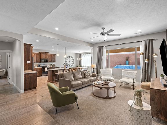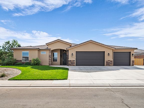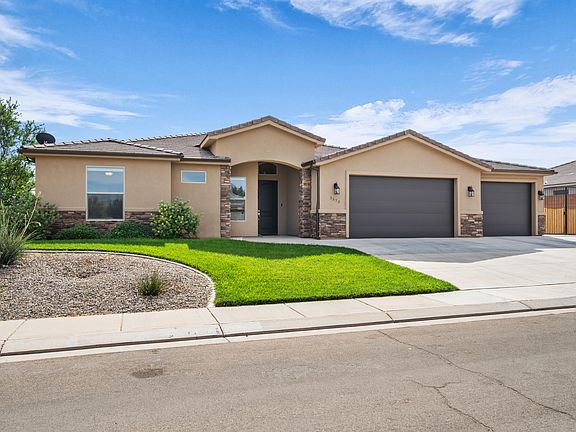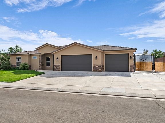 This stunning corner lot home in Dixie Springs, fully fenced and gated, shows like a model with high-end finishes throughout. The backyard is a resort-style oasis with a sparkling pool featuring an electric cover, Shamu shelf, waterfall, and fire features, all surrounded by a private, landscaped yard with a pergola. Step into the open concept living area boasting high ceilings, custom base and case, beautiful LVP flooring, accent walls, high-end appliances, and ample storage throughout. The spacious master suite offers an expansive walk-in closet, soaking tub, and a walk in shower, while the guest bathroom showcases a custom tile shower and large storage cabinet. With an oversized 3-car garage and RV parking with 50Amp power and water hookups, this home is ideal for those seeking proximity to outdoor recreation like Sand Hollow Reservoir, boating, Sand Hollow Golf Course, and more! Seller is willing to sell fully furnished at an additional cost, ask us for more details! Buyer to verify all info including utilities, rental restrictions, and HOA information if applicable.