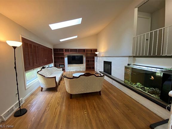 Artsy, Wooded, Ravine Setting Split Level on a Cul de Sac in the Quilliams Parkway in the Noble Neighborhood. Entry Takes you into the Vaulted Ceiling Living Room with Skylights that let the sunshine in on the beautiful Fireplace Wall and Custom Built in Bookshelves. The spectacular 100+ Gallon Fresh Water Aquarium delights from the Living Room and the Lower-Level Family Room. A few steps Down to the Fully Equipped Kitchen with newer Gas Cook Top range and Refrigerator and Adjoining Family Room. View out the kitchen window is the lovely Brick Patio and Treed Yard overlooking the Ravine! The carpeted Family Room has picture window Views of the rear yard adjoins the kitchen. There is a Large Walk In Pantry Storage Room off the Laundry Room. Up to the second Level are 3 Bedrooms and 2 Full Baths. The Carpeted Maste Bedroom has its own Shower Bath. The 2 other Bedrooms share a Spectacular Full Bath with a Skylight and a delightful custom glass beaded one-of-a-kind treatment surrounding the
